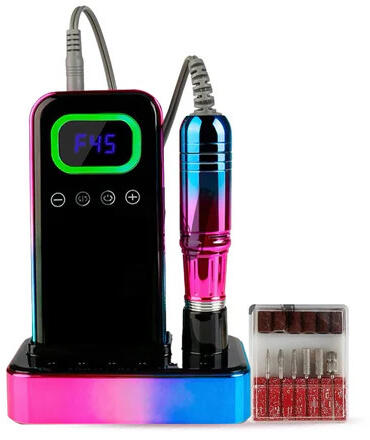 Professzionális Körömcsiszoló Gép – 36W, 45 000 RPM Ez a modern körömcsiszoló gép 36W teljesítménnyel és akár 45 000 fordulat/perc sebességgel működik, így kiválóan alkalmas professzionális és otthoni használatra egyaránt . A készülék oda-vissza állítható forgásirányt kínál, amely lehetővé teszi a rugalmas és precíz munkavégzést. Az érintőgombok segítségével könnyen kezelhető, míg az LCD kijelző biztosítja a pontos sebesség- és állapotinformációk követését. A termék különlegessége, hogy beépített LED hangulatvilágítással rendelkezik, amely modern és esztétikus megjelenést biztosít munka közben. A dokkoló állomás kényelmes töltést tesz lehetővé, míg az USB kábel praktikus csatlakozást biztosít. Fontos megjegyezni, hogy a készülék színe minimálisan eltérhet a képeken láthatótól, a fényviszonyok és kijelzőbeállítások miatt.